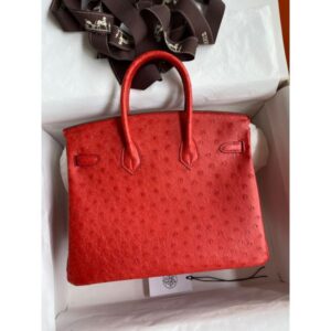 Hermes Birkin 25 Retourne Handmade Bag In Red Ostrich Leather