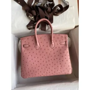 Hermes Birkin 25 Retourne Handmade Bag In Pink Ostrich Leather