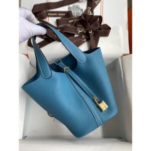 Hermes Picotin Lock 18 Handmade Bag in Blue Jean Clemence Leather
