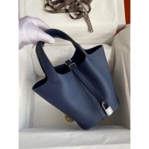 Hermes Picotin Lock 18 Handmade Bag in Blue Encre Clemence Leather