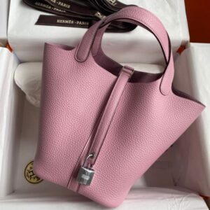 Hermes Picotin Lock 18 Handmade Bag in Mauve Sylvestre Clemence Leather