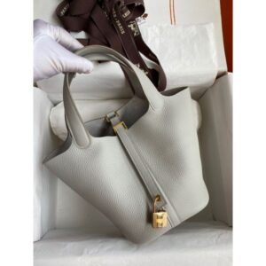 Hermes Picotin Lock 18 Handmade Bag in Pearl Grey Clemence Leather