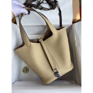 Hermes Picotin Lock 22 Handmade Bag in Tourterelle Clemence Leather