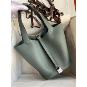 Hermes Picotin Lock 22 Handmade Bag in Vert Amande Clemence Leather
