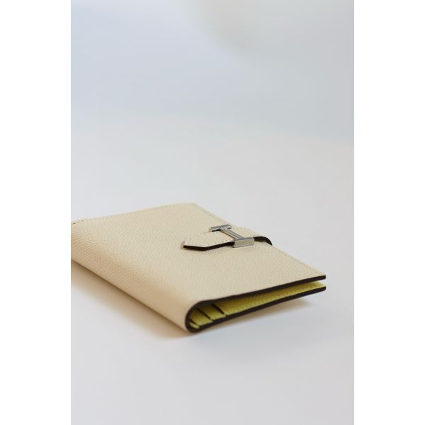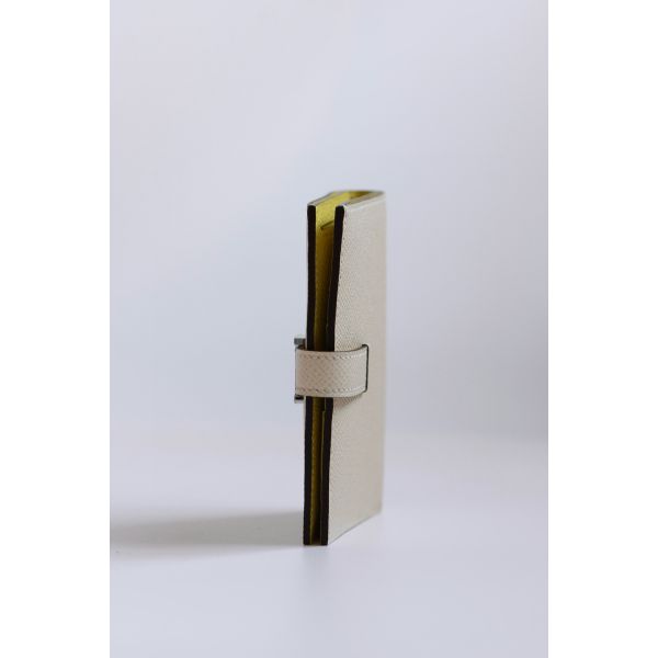 The Bearn pays tribute to the South-West region of France and is part of a collection featuring the names of different French regions. A compact wallet with a sleek design, it offers multiple compartments for credit cards, coins and bills. Once closed, a leather flap slides into an “H” shaped clasp and makes it a true classic. Handcrafted in Epsom calfskin, a printed leather takes its name from a town in south-east England that is famous for its horse races.