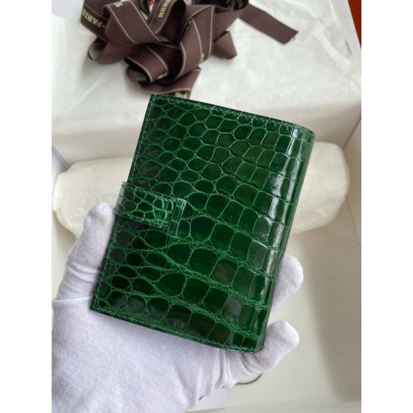 Hermes Bearn Compact Wallet in Vert Fonce Shiny Alligator Leather