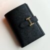 The Bearn pays tribute to the South-West region of France and is part of a collection featuring the names of different French regions. A long wallet with a sleek design, Its thin size makes it unsuitable for lots of bills and coins, which can make it look overstuffed and distorted. Once closed, a leather flap slides into an “H” shaped clasp and makes it a true classic. Handcrafted in Swift calfskin, first appeared in the collections 2004. The leather features a fine grain which is incredibly soft to touch.
