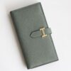 The Bearn pays tribute to the South-West region of France and is part of a collection featuring the names of different French regions. A long wallet with a sleek design, Its thin size makes it unsuitable for lots of bills and coins, which can make it look overstuffed and distorted. Once closed, a leather flap slides into an “H” shaped clasp and makes it a true classic. Handcrafted in Epsom calfskin, a printed leather takes its name from a town in south-east England that is famous for its horse races.