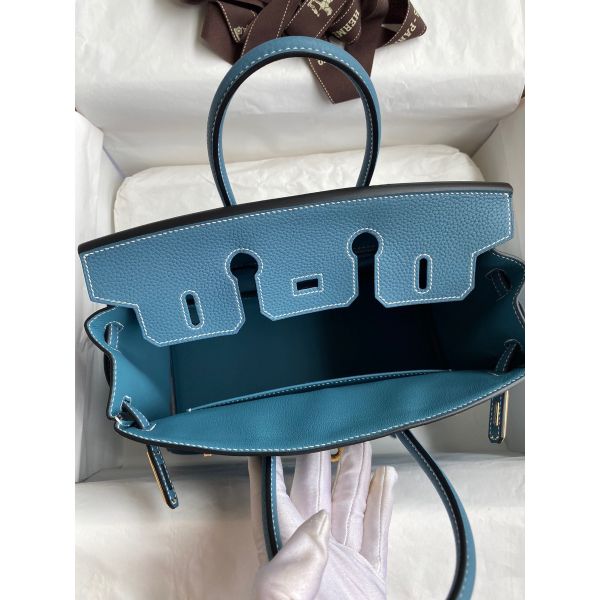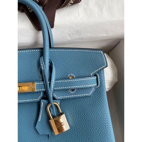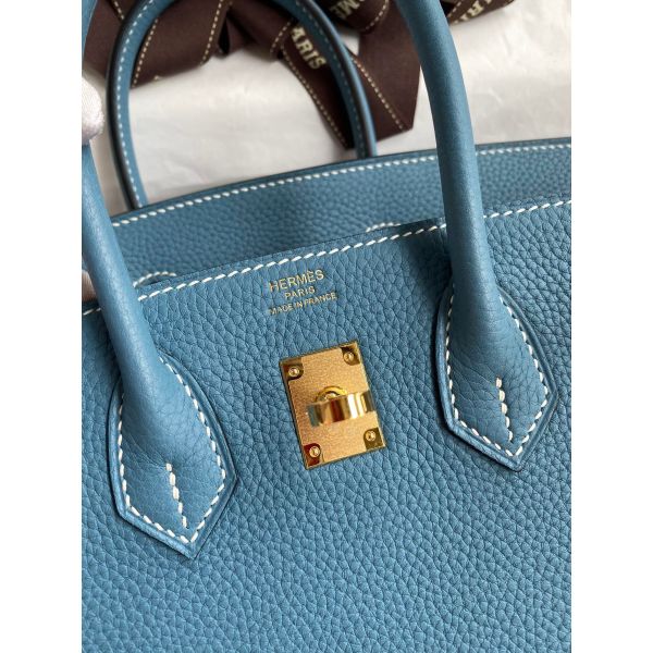 Hermes Birkin 25 Handmade Bag In Blue Jean Clemence Leather