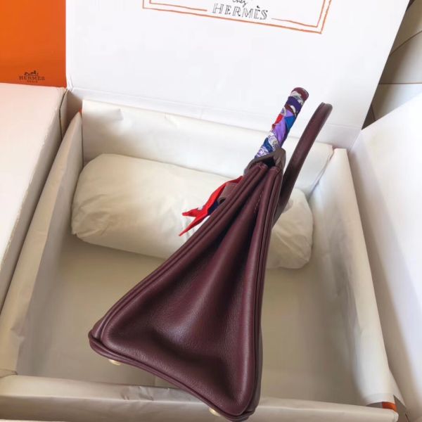 Hermes Birkin 25 Handmade Bag In Burgundy Swift Leather