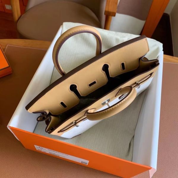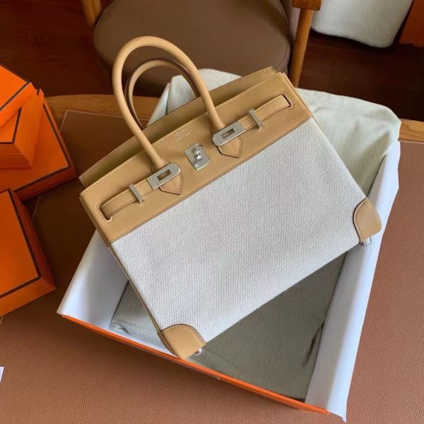 Hermes Birkin 25 Handmade Bag In Toile & Biscuit Swift Leather