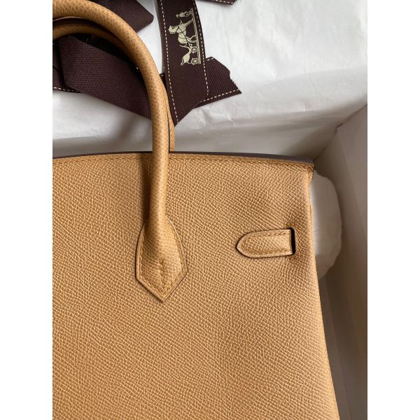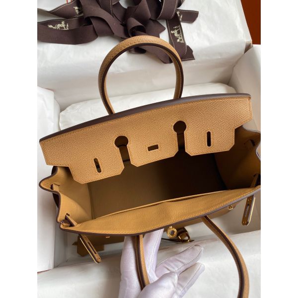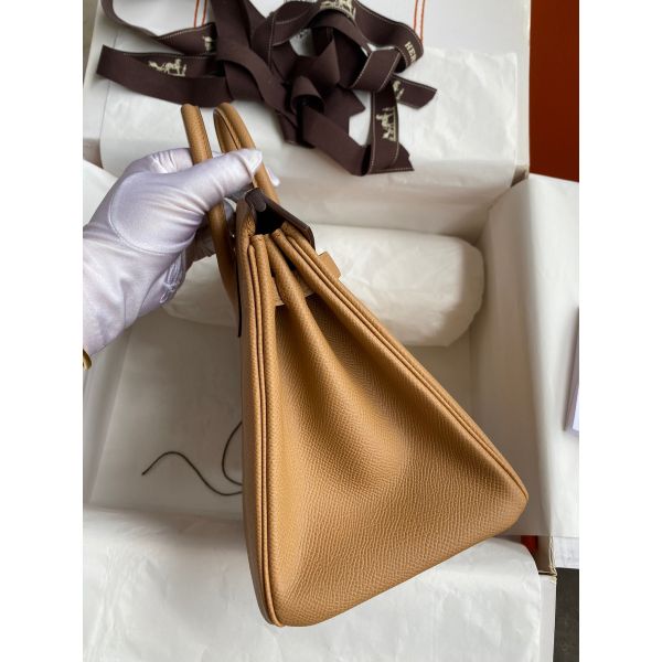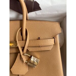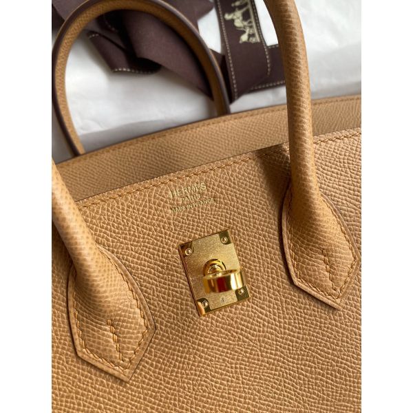 Hermes Birkin 25 Retourne Handmade Bag In Biscuit Epsom Calfskin