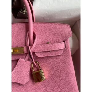 Hermes Birkin 25 Retourne Handmade Bag In Pink Clemence Leather
