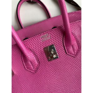 Hermes Birkin 25 Retourne Handmade Bag In Pink Lizard Leather