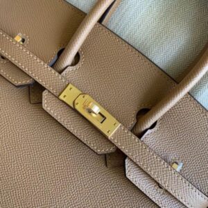 First adorned on the arm of the infamous Jane Birkin back in 1984, the Hermes Birkin Bag quickly soared to the top of the popularity charts. In addition to the classic Retourne Birkin, Hermès released the Sellier Birkin as part of the Birkin line in 2010. The Sellier style with external stitching and a sharp-edged structure is an exceptionally elegant handbag. This Sellier Birkin 25 is primarily crafted of Epsom leather, this printed leather takes its name from a town in south-east England that is famous for its horse races.
