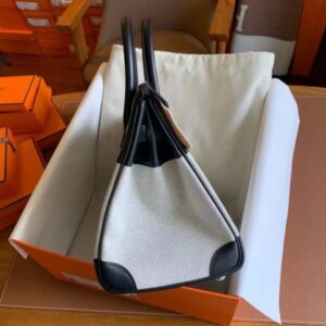 The original Hermès Birkin bag was inspired by and named after 60’s fashion icon Jane Birkin. It was designed to be a luxury bag that would meet the needs and stand up to daily use by a multitasking woman on the go. For decades Hermès has produced examples of their iconic handbags with lightweight canvas bodies. Typically these bags are paired with black swift leather trim.