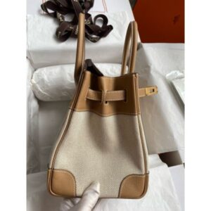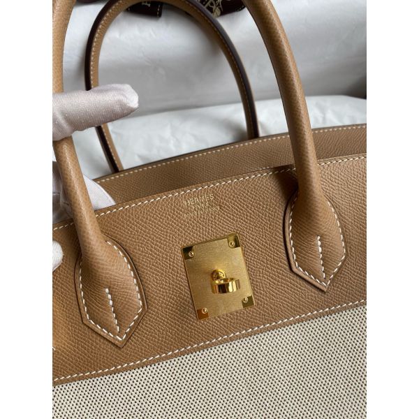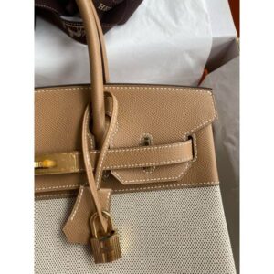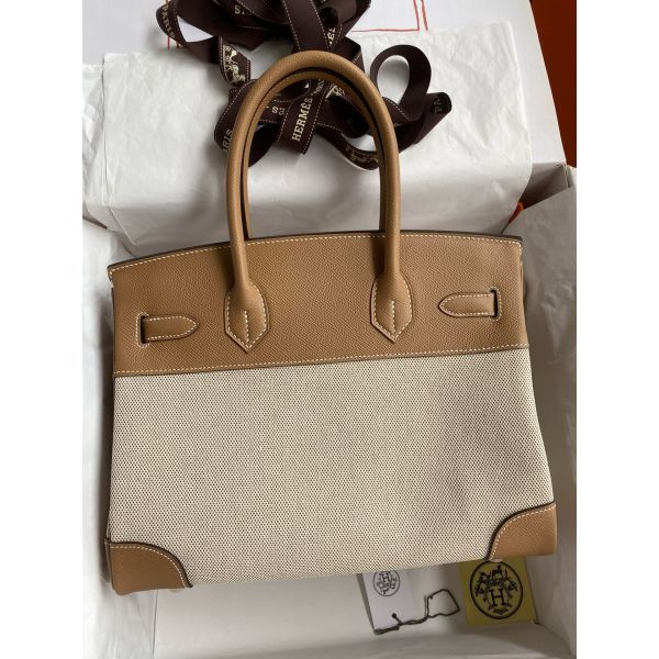 Hermes Birkin 30 Handmade Bag In Toile & Chai Epsom Leather