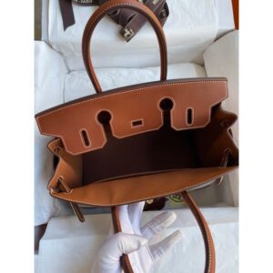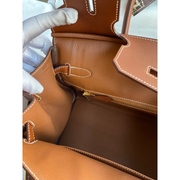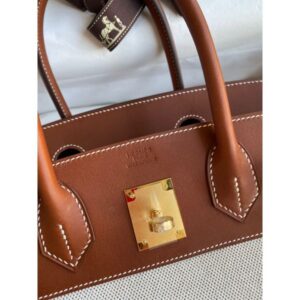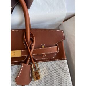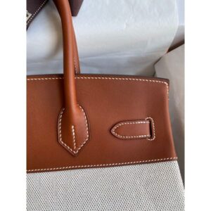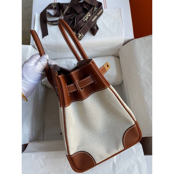 Hermes Birkin 30 Handmade Bag In Toile & Gold Swift Leather