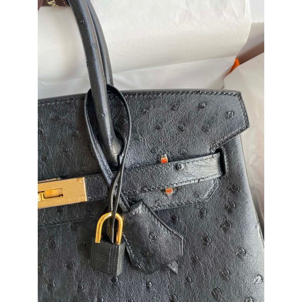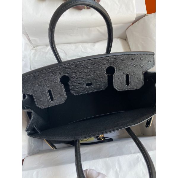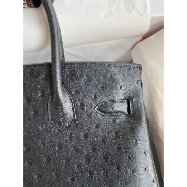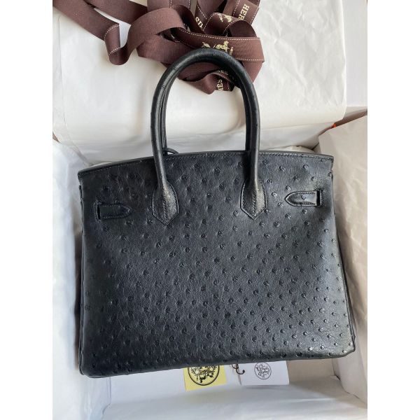 Hermes Birkin 30 Retourne Handmade Bag In Black Ostrich Leather