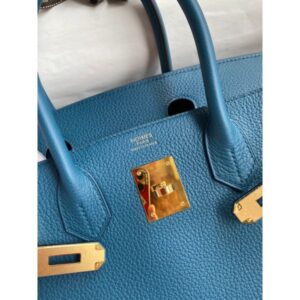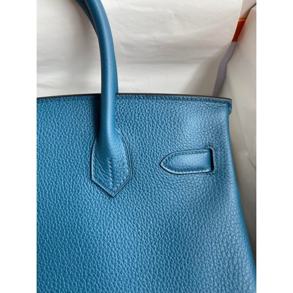 The original Hermès Birkin bag was inspired by and named after 60’s fashion icon Jane Birkin. It was designed to be a luxury bag that would meet the needs and stand up to daily use by a multitasking woman on the go. The Birkin 30 is the Goldilocks of the Birkin bag family, It is the ideal Hermès bag for everyday use. Created in Retourne style, thanks to the taurillon Clemence leather gives this bag the buttery soft feel that only comes from the highest quality leather.