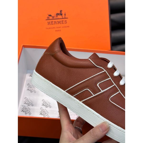 Hermes Boomerang Sneakers In Brown Epsom Calfskin