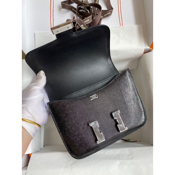 Hermes Constance 18 Handmade Bag In Black Lizard Leather