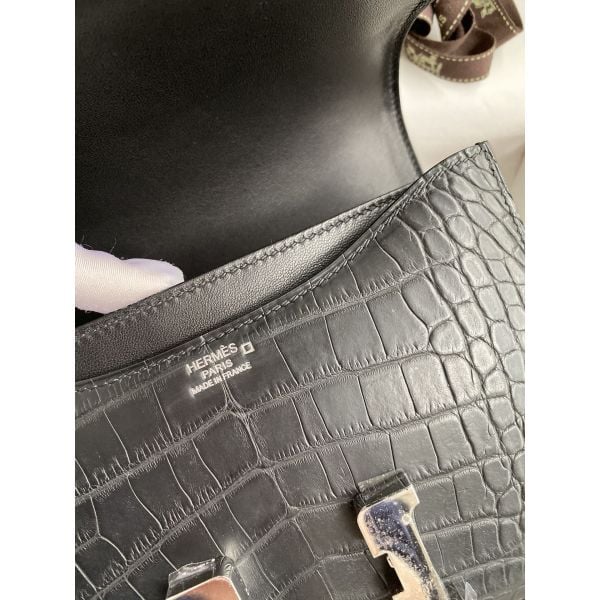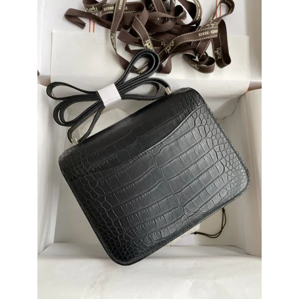 Hermes Constance 18 Handmade Bag in Black Matte Alligator Leather