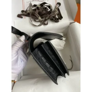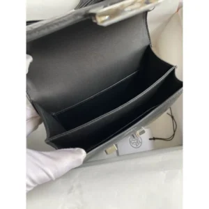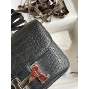 Introduced in 1969, the Hermès Constance quickly became one of the most highly sought-after of the brand’s luxury bags, behind only the Kelly bag and the Birkin. The Hermès Constance 18 is a stylish shoulder bag designed with versatility in mind. The Constance 18, also referred to as the Hermès Constance Mini. The squarish shape and large, prominent “H” closure across the front give this bag a youthful appeal, even when rendered in a sophisticated Matte Alligator skin. A skin that comes from the Mississippi Alligator, this leather is created by polishing the spots with agate for a Matte finish.
