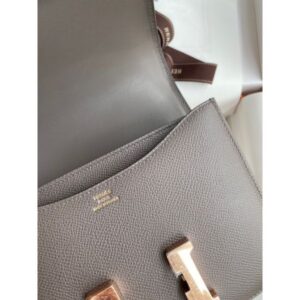 Introduced in 1969, the Hermès Constance quickly became one of the most highly sought-after of the brand’s luxury bags, behind only the Kelly bag and the Birkin. The Hermès Constance 18 is a stylish shoulder bag designed with versatility in mind. The Constance 18, also referred to as the Hermès Constance Mini. The squarish shape and large, prominent “H” closure across the front give this bag a youthful appeal, even when rendered in a durable Epsom calfskin, which is particularly popular because it tends to show color with greater vibrancy than most other leathers.