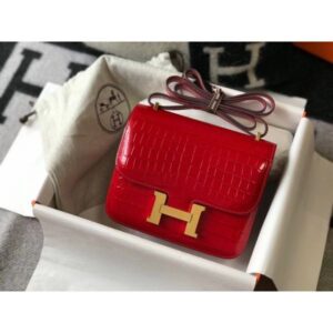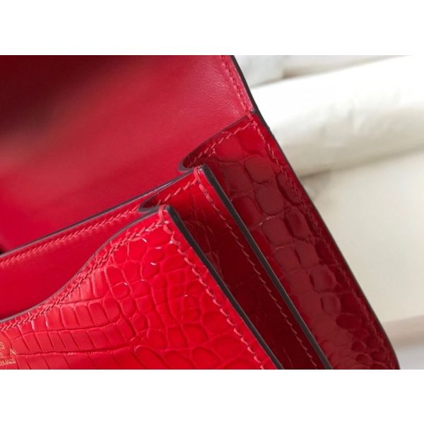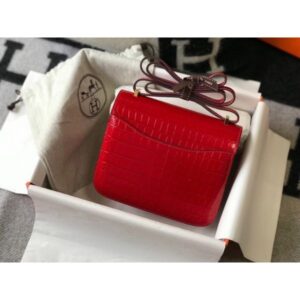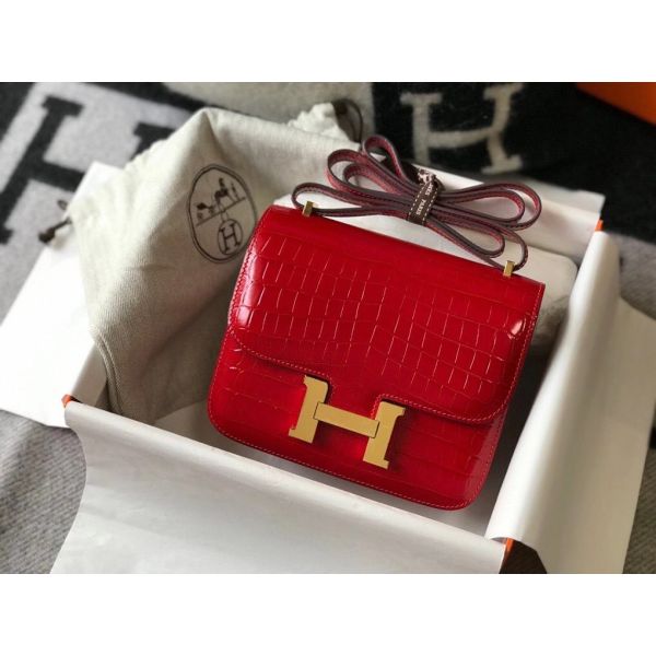 Hermes Constance 18 Handmade Bag In Red Embossed Crocodile
