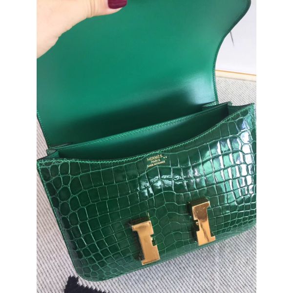 Hermes Constance 24 Handmade Bag In Green Niloticus Crocodile