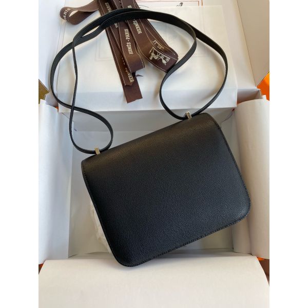 Hermes Constance Enamel 18 Handmade Bag In Black Swift Calfskin