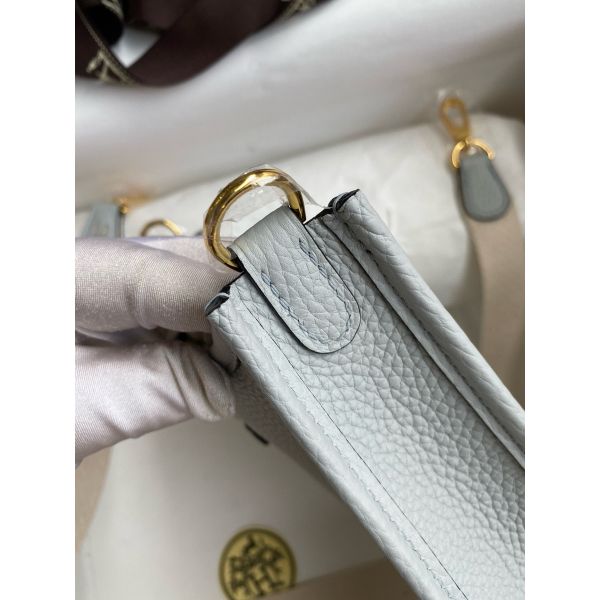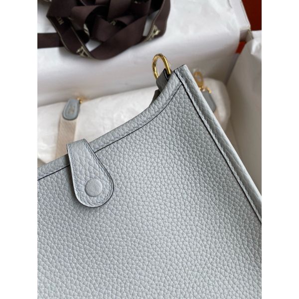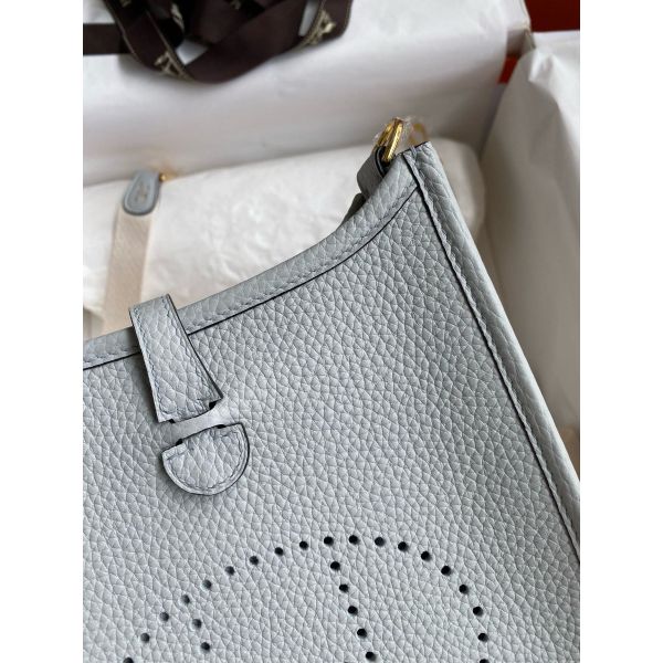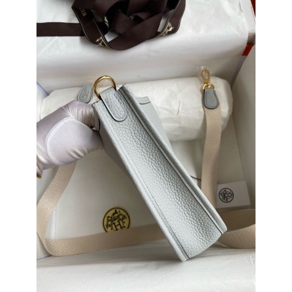 Hermes Evelyne Mini Handmade Bag in Blue Brume Clemence Leather