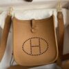 The Hermès Evelyne TPM, also known as the Hermès Evelyne Mini or Evelyne 16, is the smallest of the Evelyne line. As a “fashion” bag, the signature perforated “H” was now intended to be turned around and shown to the world. The addition of a crossbody strap and a mini size increased demand for the bag among fashionistas worldwide. The minimalist style and streamlined silhouette have made the Hermès Evelyne Mini the most popular of the non-quota bags the design house offers.