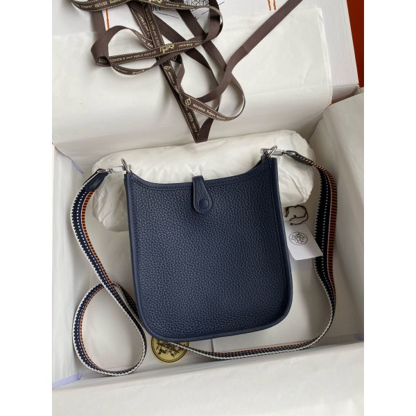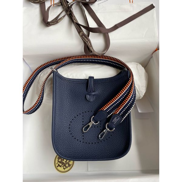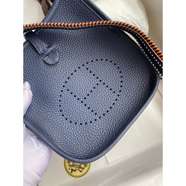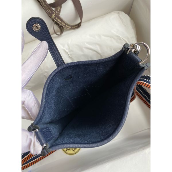 Hermes Evelyne Mini Handmade Bag in Navy Blue Clemence Leather