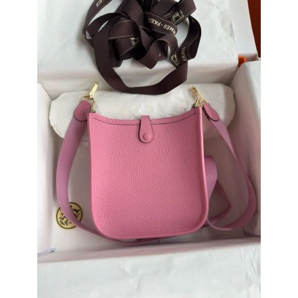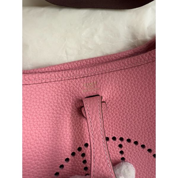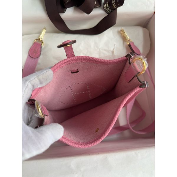 Hermes Evelyne Mini Handmade Bag in Rose Sakura Clemence Leather