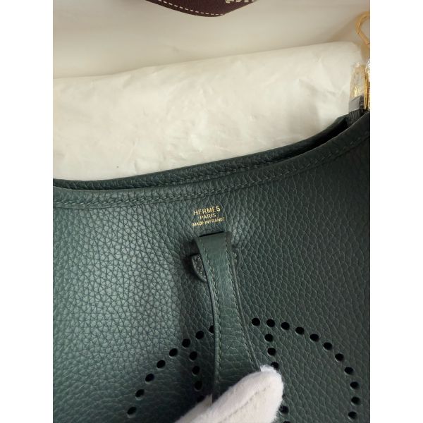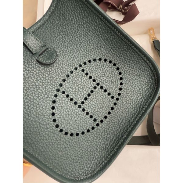 Hermes Evelyne Mini Handmade Bag in Vert Cypres Clemence Leather