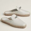 Hermes Oran Slide Sandals in Gold Swift Calfskin with Canvas