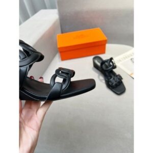 Hermes’s Figari sandals are set on 55mm wedge heels that offer comfortable lift. They’re made from nappa leather and have Iconic “Chaine d’Ancre” inspired straps for a chic and casual look, perfect for summer. Wear them with sundresses, jeans and skirts alike.