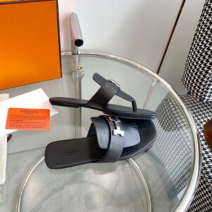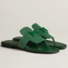 Hermes Oasis Sandals in Blue Swift Leather with Botanique Printed