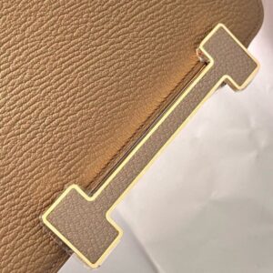 Embrace a cool and edgy vibe with the Hermès Geta. A more casual bag than other Hermès styles, it fills a crucial niche in your wardrobe. It is handcrafted from luxurious Chèvre Mysore goatskin with a grain that softens over time. The bag’s design was inspired by Japanese wooden platform sandals. The chic H closure is repeated on the back. Set low on the bag, the metal hardware is inset with leather matching the bag. The “legs” of the H closure also serve at the bag’s feet, raising the bottom of the bag up off any surface you place it on.