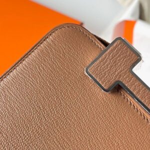 Embrace a cool and edgy vibe with the Hermès Geta. A more casual bag than other Hermès styles, it fills a crucial niche in your wardrobe. It is handcrafted from luxurious Chèvre Mysore goatskin with a grain that softens over time. The bag’s design was inspired by Japanese wooden platform sandals. The chic H closure is repeated on the back. Set low on the bag, the metal hardware is inset with leather matching the bag. The “legs” of the H closure also serve at the bag’s feet, raising the bottom of the bag up off any surface you place it on.