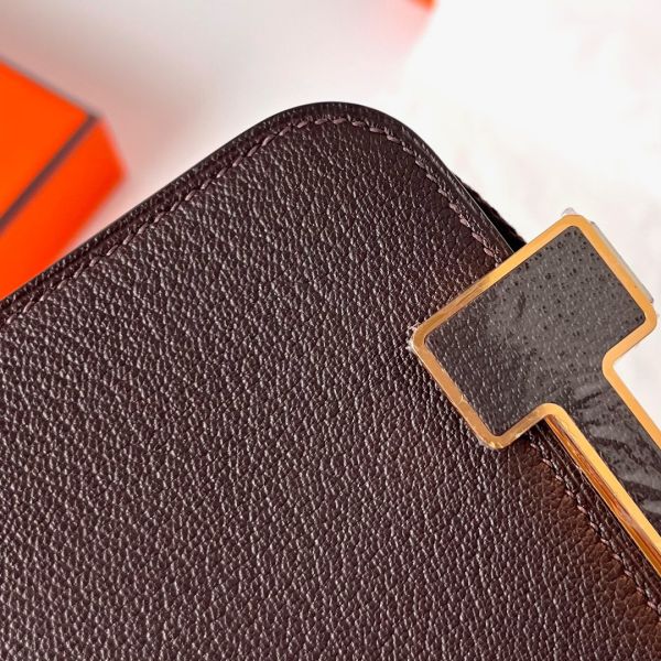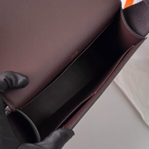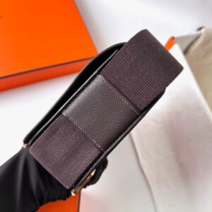 Embrace a cool and edgy vibe with the Hermès Geta. A more casual bag than other Hermès styles, it fills a crucial niche in your wardrobe. It is handcrafted from luxurious Chèvre Mysore goatskin with a grain that softens over time. The bag’s design was inspired by Japanese wooden platform sandals. The chic H closure is repeated on the back. Set low on the bag, the metal hardware is inset with leather matching the bag. The “legs” of the H closure also serve at the bag’s feet, raising the bottom of the bag up off any surface you place it on.