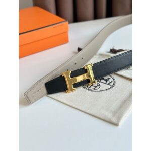 Hermes H Touareg Reversible Belt 32MM in Gold Clemence Leather