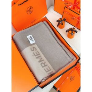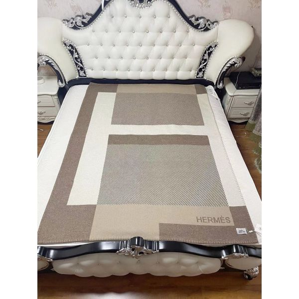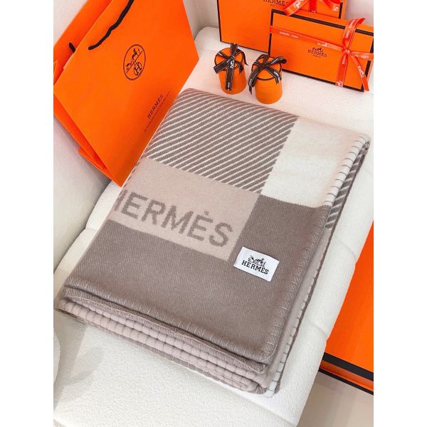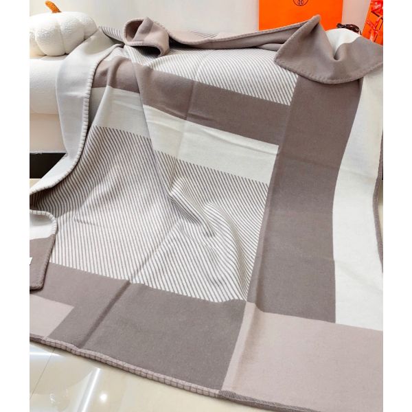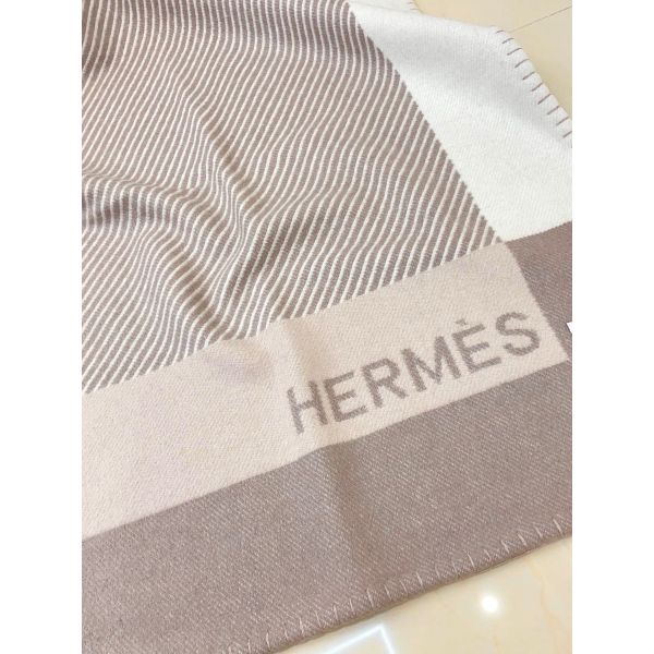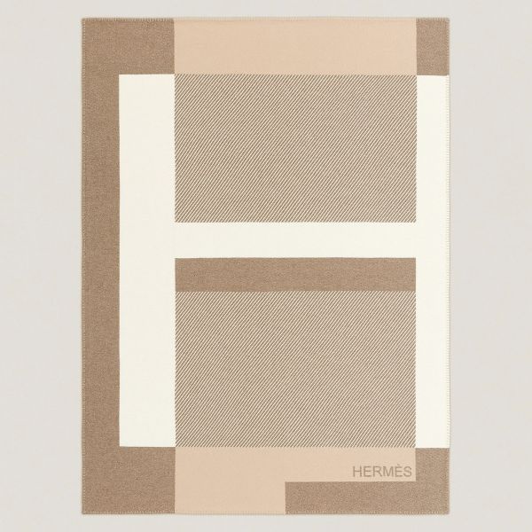 Hermes H Riviera Blanket in Beige Wool and Cashmere