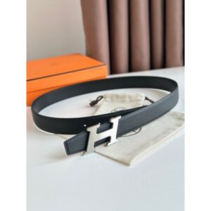 Hermes H Striee Reversible Belt 32MM in Green and Black Epsom Calfskin