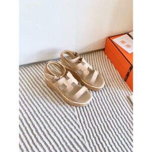 Hermes Oran Slide Sandals in White Swift Calfskin with Printed Lining
