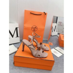 Step out in style for seasons to come with Hermes’s timeless Heden sandals. Made from suede leather with rhinestone details and palladium-plated Hapi buckle. They have “H” cut-out vamp and 80mm stiletto heels, while the wrap-around ankle strap for a chic feminine look.
