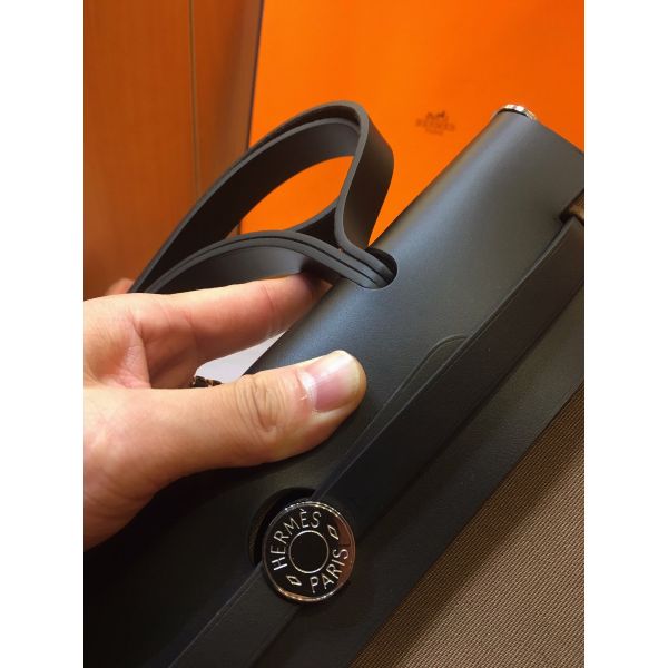 Hermes Herbag Zip 31cm Bag In Black And Taupe