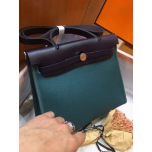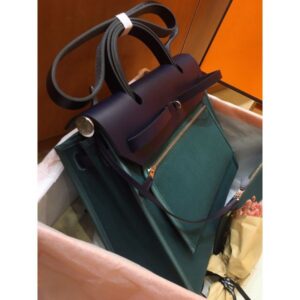 Hermes Herbag Zip 31cm Bag In Navy And Green